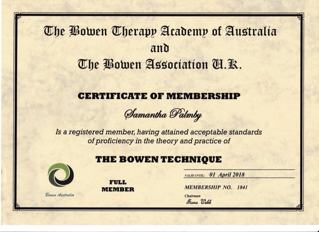 In 2019 I became qualified to perform Advanced Bowen work, having completed "Specialised Bowen Procedures 1" (SBP1), IOS Bowen and furthermore qualified to teach medically endorsed, Pilates based exercises for bone and joint health, safe for those with Osteoporosis.
